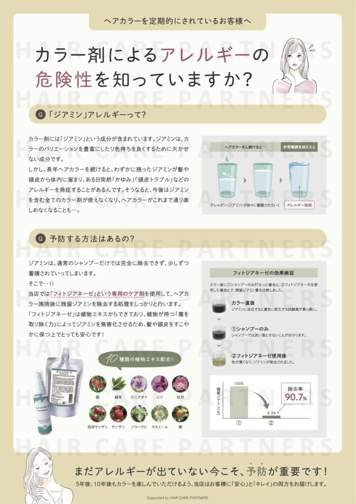 ヘアカラー後の残留ジアミンを取り除き、ジアミンアレルギーの発症を予防します。