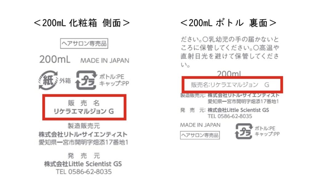 *パッケージに「販売名:リケラエマルジョン G」という表記が追加されます。